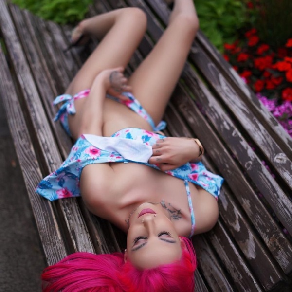 Meine pinken Haare verraten, dass Ich der Teufel im Bett bin.